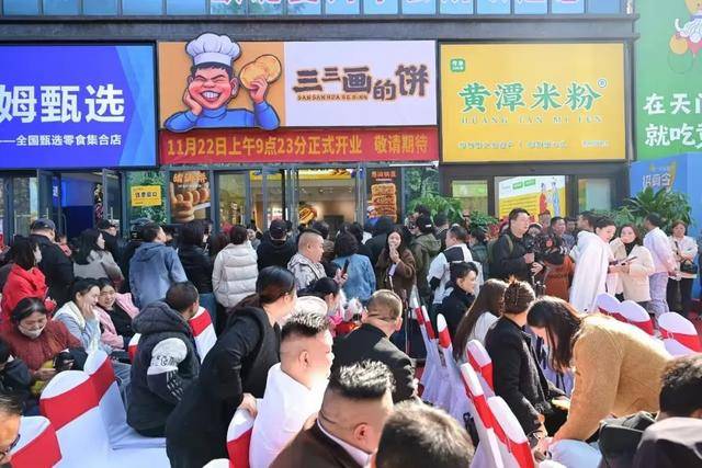 此前,三三画的饼已经在潜江、天门和仙桃(仙桃已经开了两家门店)都开有门店,因为三江锅本身的知名度,所以每开一家店,开业的时候都会引起当地居民排队的人潮,有时候甚至要排一两个小时,才能买到产品。